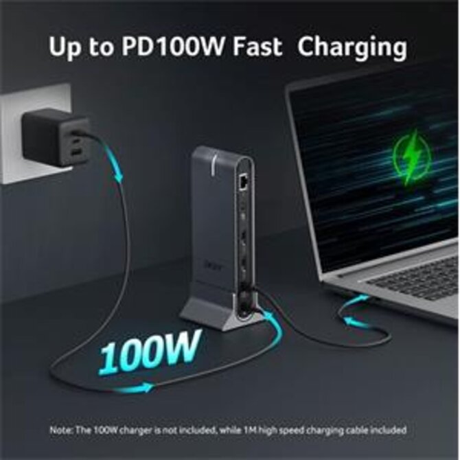 Univerzální USB-C dokovací stanice Acer HP.DSCAB.022 nabízí 15 funkcí v jednom – 8K video výstup, rychlé USB porty, čtečku karet, Ethernet a Power Delivery. Ideální pro práci i cestování.