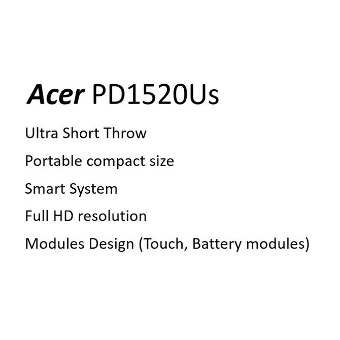 Acer PD1520Us UST LED DLP, FHD 1920x1080, SMART, WiFi, 500 ANSI, 10000:1, HDMI, 2xUSB 2.0, repro 2x3W, 0.73Kg