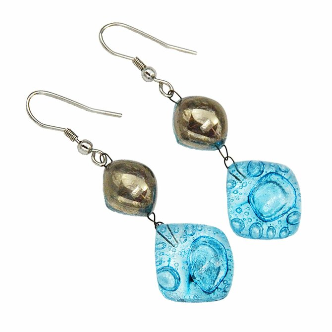 ArteGlass náušnice tyrkys bublinkové sklo zdobené platinou