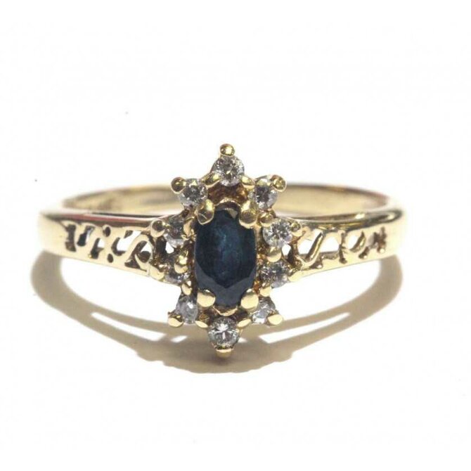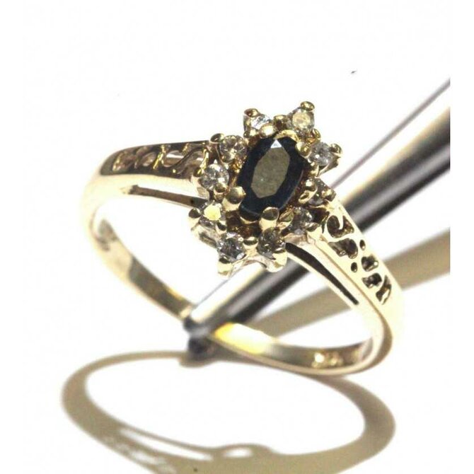 AutorskeSperky.com - 14 kt zlatý prsten se safírem a brilianty - S5154 Žluté zlato