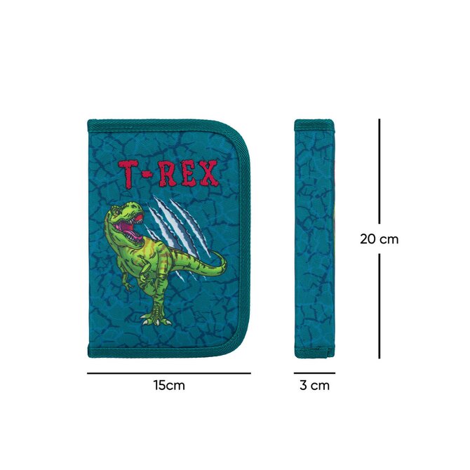 BAAGL Školní penál dvě chlopně T-REX zelená, Textil