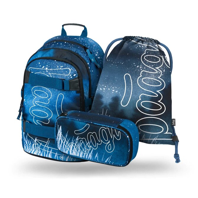 Baagl Školní set Skate Steel modrá, Textil