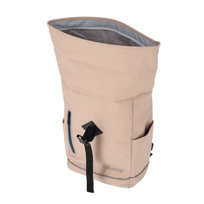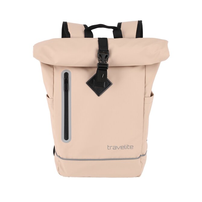 Trendy batoh německé značky Travelite v lososové barvě s rolovacím zavíráním v pogumovaném provedení je vhodný na krátké cesty nebo do práce.