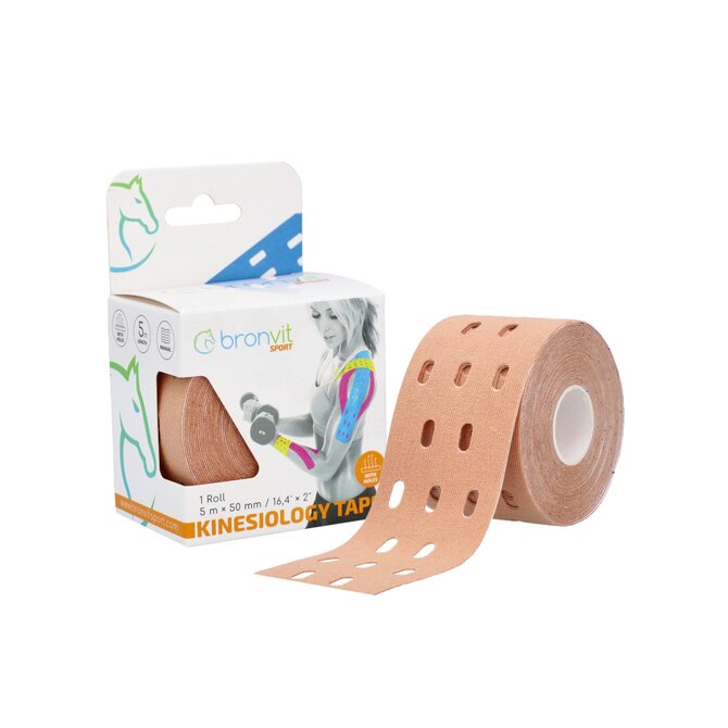 Děrované tejpy BronVit se vyznačují vysokou kvalitou a pružností, dokonale přilnou k vaší pokožce díky speciálním elastickým vláknům a po nalepení se tak cítíte pohodlně a o tejpu skoro nevíte. Otvory v tejpu vám umožní ještě větší svobodu a podporu v pohybu, navíc budete vnímat příjemné větrání kůže a méně tahu oproti standardním kinesiologickým tejpům. Pomocí otvorů v tejpu bude vaše kůže lépe dýchat a méně se potit, a to vše při zachování všech učinných vlastnostní tejpů. Díky menšímu obsahu lepící hmoty je děrovaný tejp zároveň vhodný pro ženy s citlivou pokožkou nebo pro jedince, kteří trpí na zarudnutí kůže po odstranění klasického tejpu. Ideální je také pro jemnou dětskou pokožku. V neposlední řadě doporučujeme mužům se silnějším ochlupením.