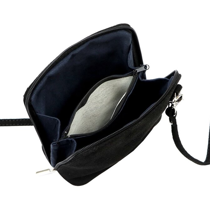 Černá malá kožená - semišová - crossbody kabelka no. 03 černá, kůže