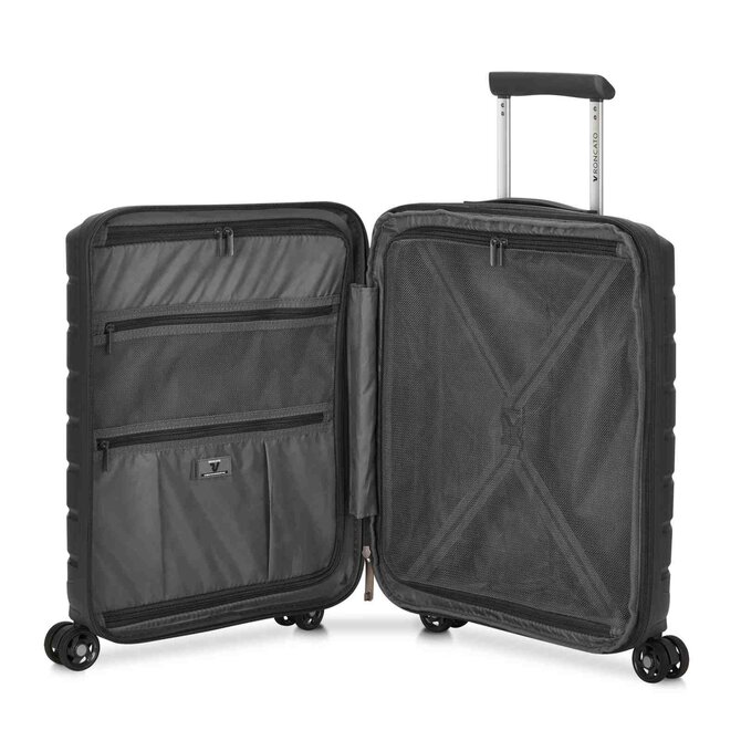 Cestovní kufr Roncato B-FLYING S kapsa USB port černá, Polypropylen