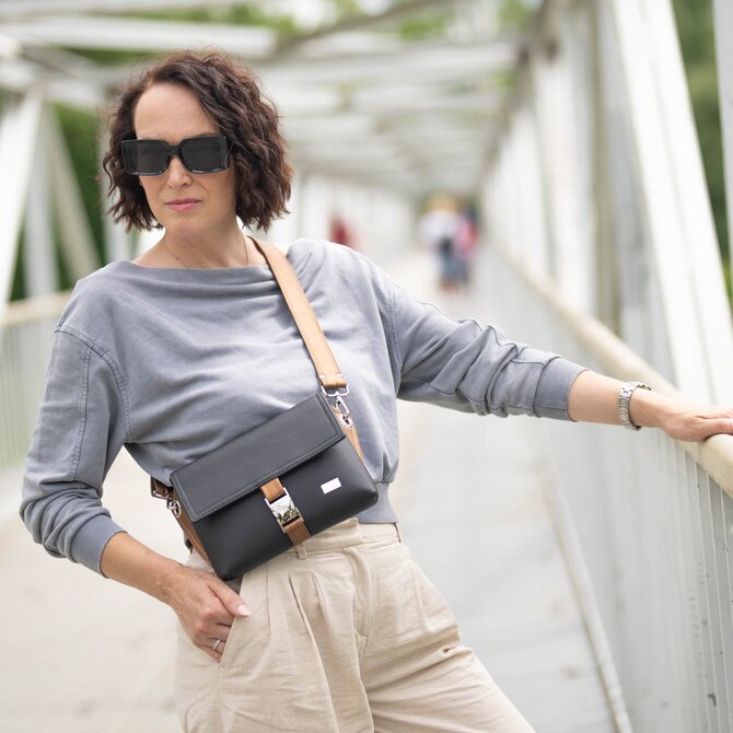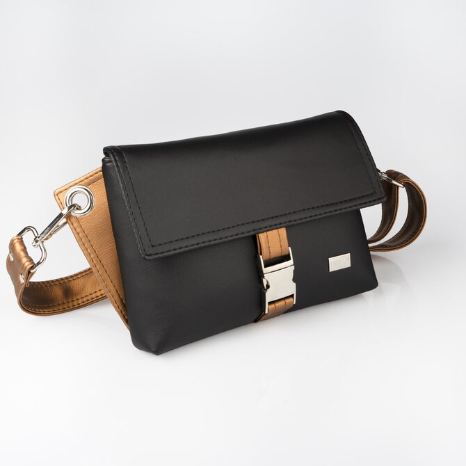 Crossbody kabelka/ledvinka ELVEE černá, hnědá metalíza Černá, Small