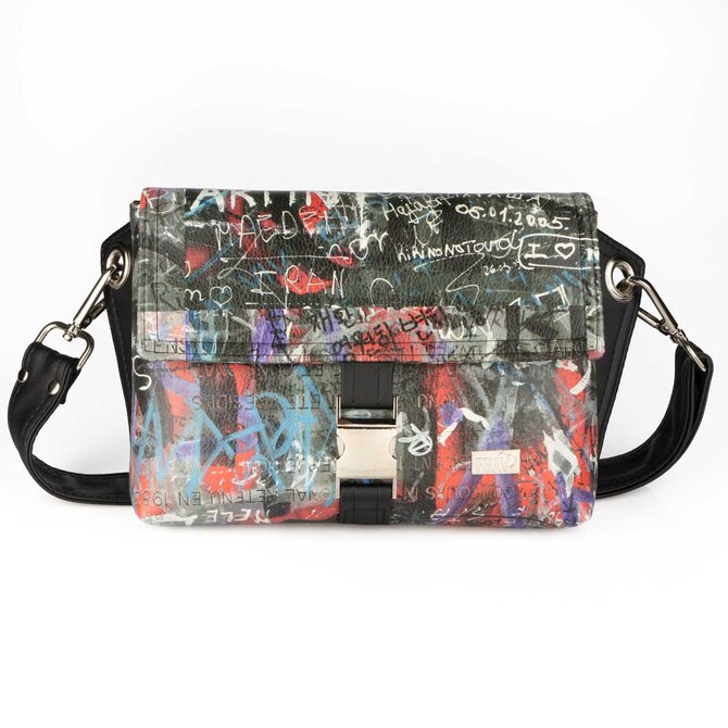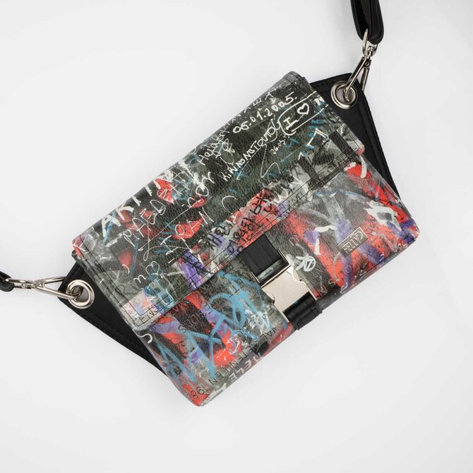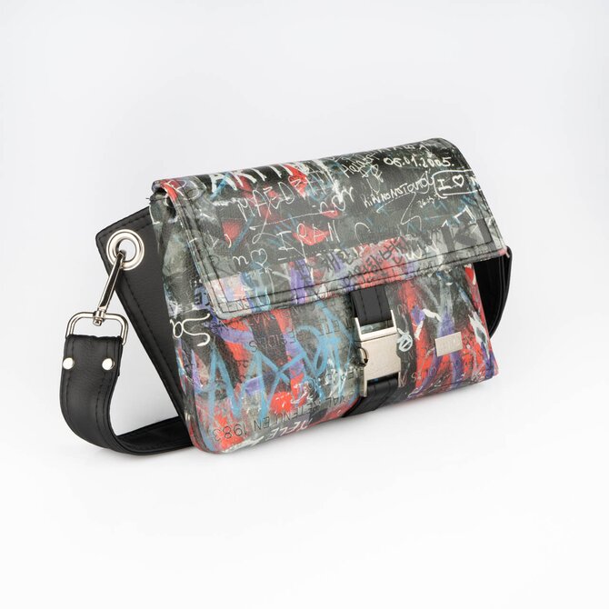Crossbody kabelka/ledvinka ELVEE černá s motivem GRAFFITI Černá, Small