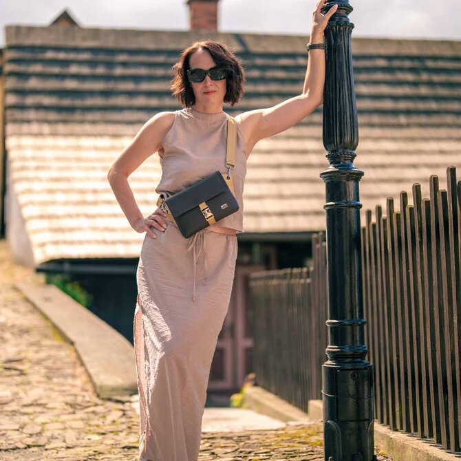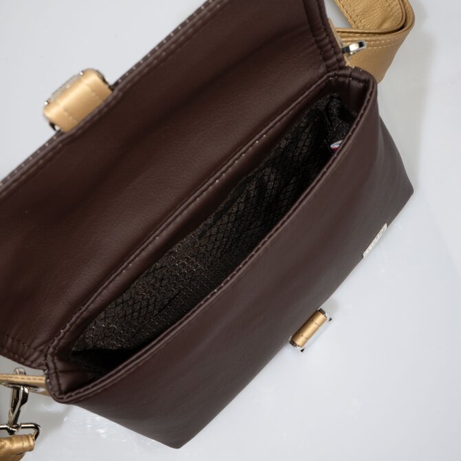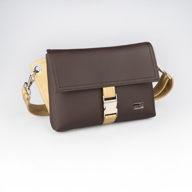 Crossbody kabelka/ledvinka ELVEE čokoládová, zlatá metalíza Hnědá, Small