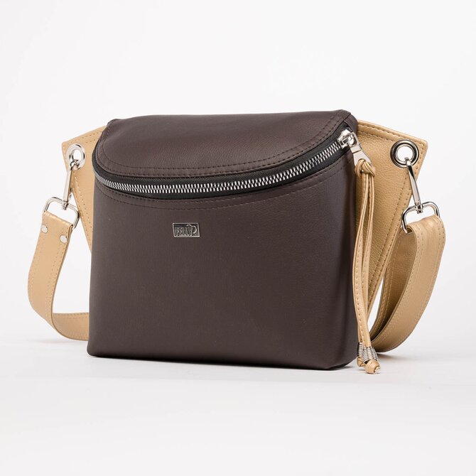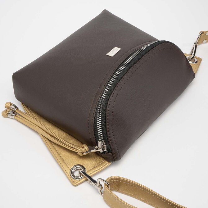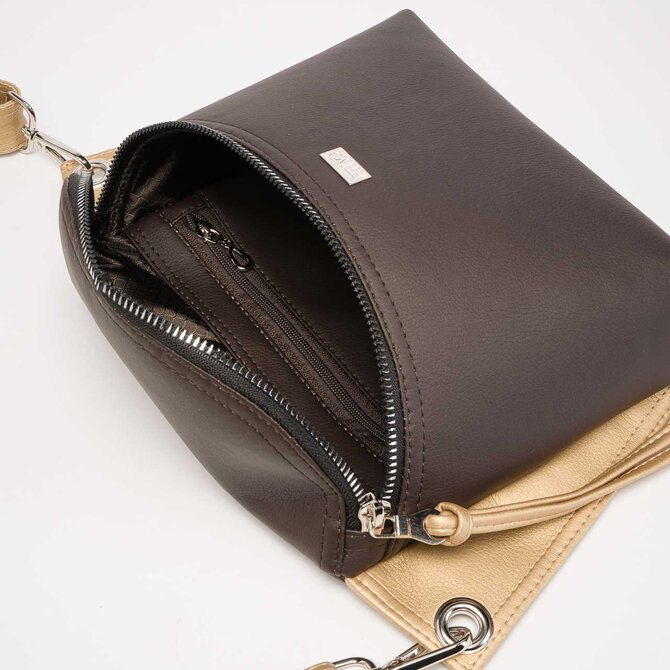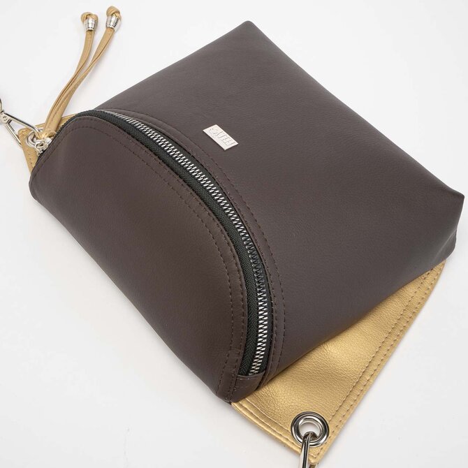Crossbody ledvinka SALOME čokoládová, zlatá metalíza Hnědá, Medium