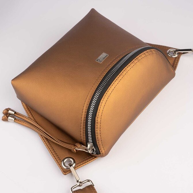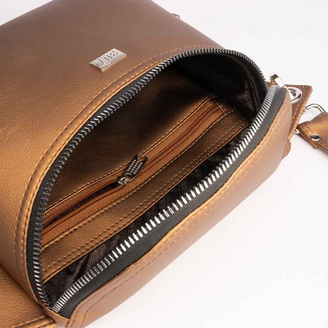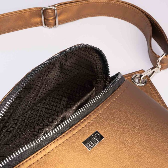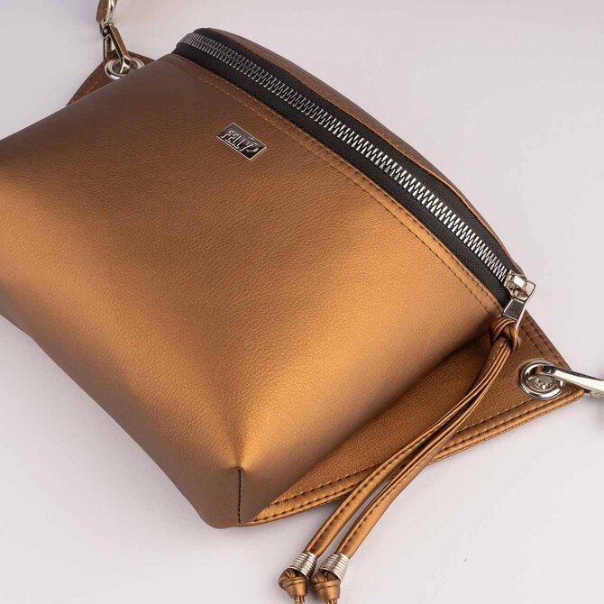 Crossbody ledvinka SALOME hnědá metalíza Zlatostříbrná, Medium