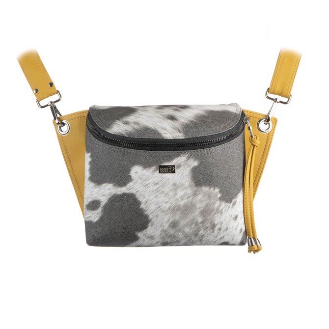 Crossbody ledvinka SALOME zvířecí motiv se žlutou Šedá, Medium