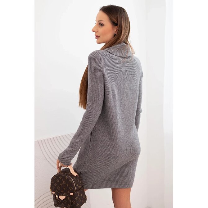 Dámské úpletové šaty / prodloužený svetr K1ZS5186 - šedé - vel. UNI Šedá, UNI