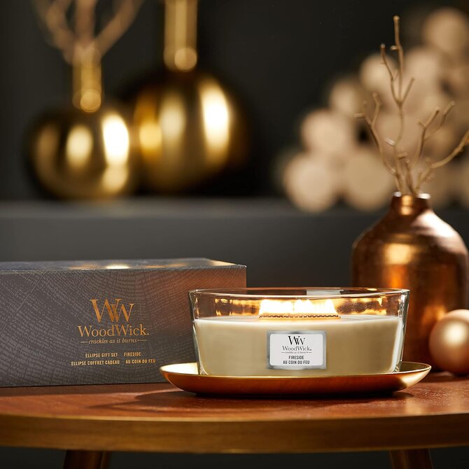 Dárková sada: Dárkové balení 1x vonná svíčka s dřeveným knotem Elipsa Loď Fireside WoodWick 453,6 g