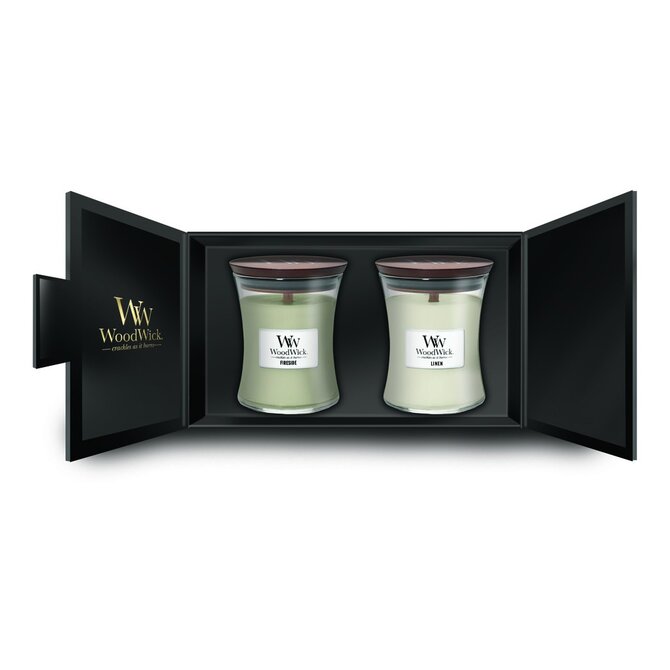 Dárková sada: Dárkové balení 2x střední vonná svíčka s dřeveným knotem WoodWick 2x 275 g