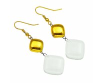 Náušnice bílé sklo zdobené zlatem elegantní jemná ...