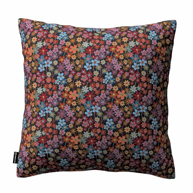 Dekoria Kinga - potah na polštář jednoduchý, kolorowe kwiaty na czarnym tle, 50 x 50 cm, Intenso Premium, 144-32