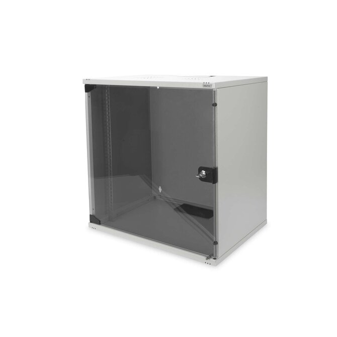 Digitus 12U nástěnná skříň, SOHO, nesmontovaná 595x540x400 mm, plné skleněné přední dveře, šedá