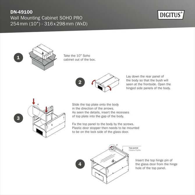 DIGITUS DN-49100 Nástěnná skříň 6U, SOHO PRO, nesmontovaná, 10", 325 x 315 x 300 mm, šedá (RAL 7035)