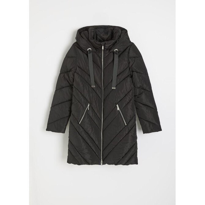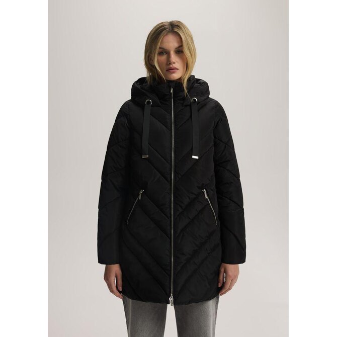 Lehká zimní bunda - měkká, lehká výplň, - módní prošívaný design, - funkční kapuce, - vysoký stojáček, - dvě vnější kapsy, - podšívka s logem