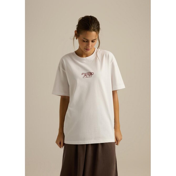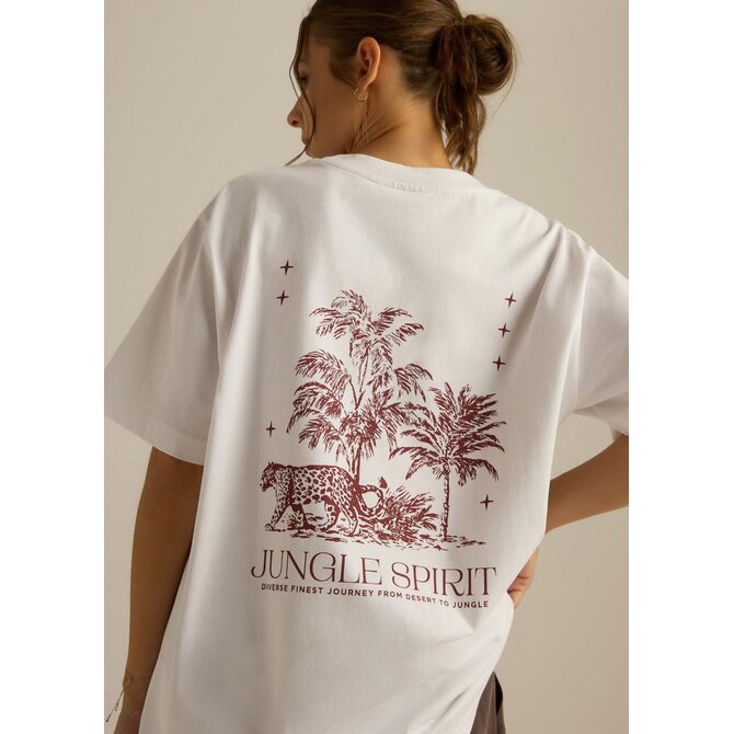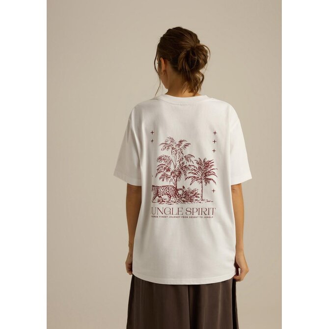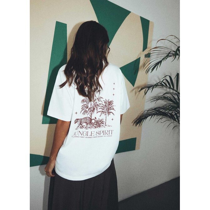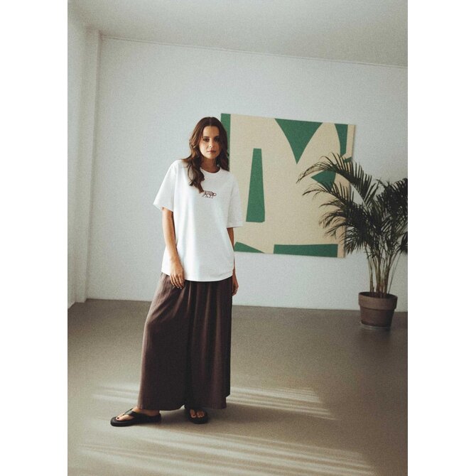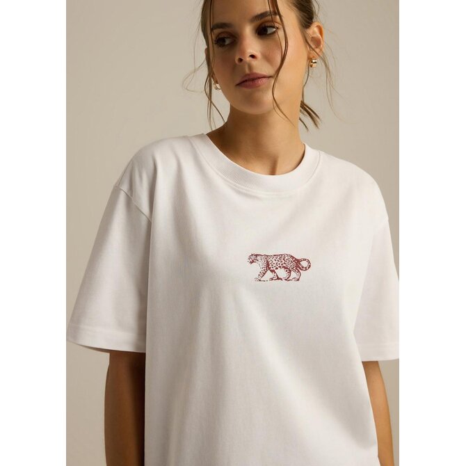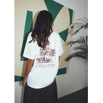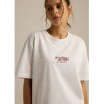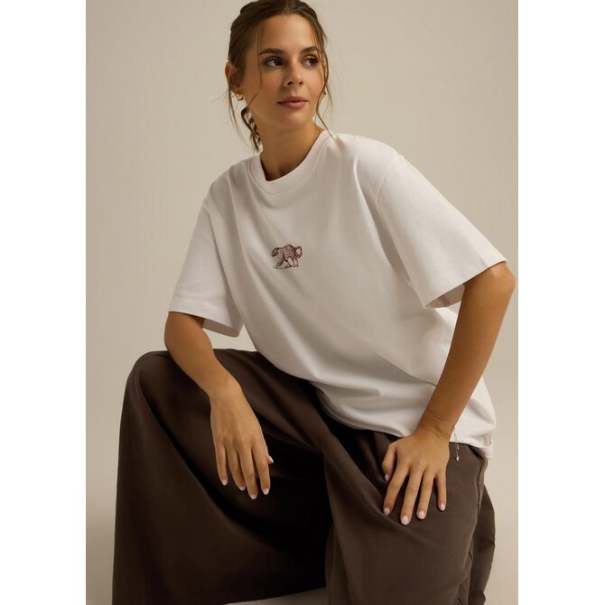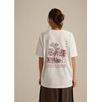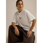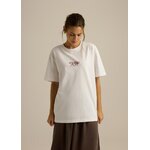 Bavlněné tričko z měkkého žerzeje - volný střih, - vyrobené z bavlněného žerzeje, - s originálním potiskem na přední a zadní straně, - dostupné v teple bílé barvě.
