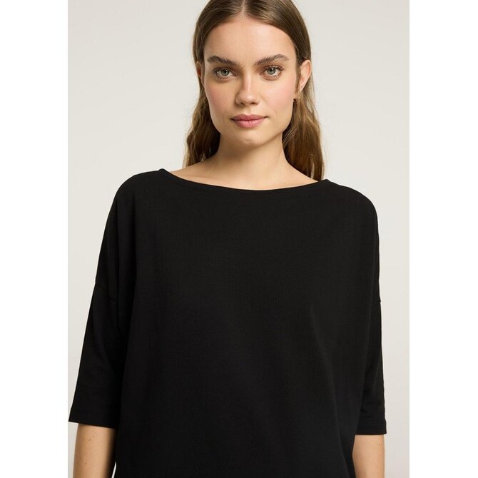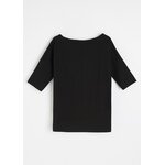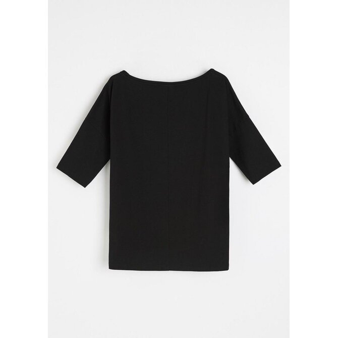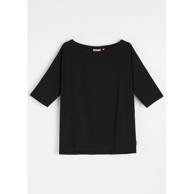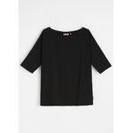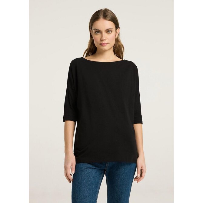Dámská bavlněná halenka s lodičkovým výstřihem - volný střih, standardní délka, - snížená ramena, - přiléhavé 3/4 rukávy, - dostupná v bílé a černé barvě.