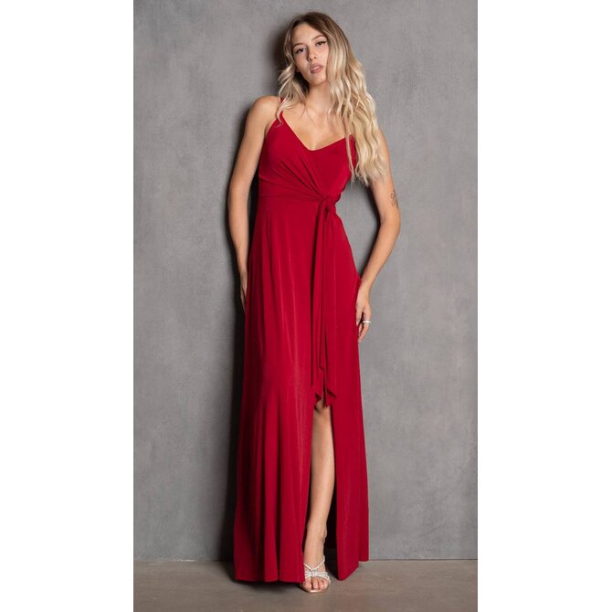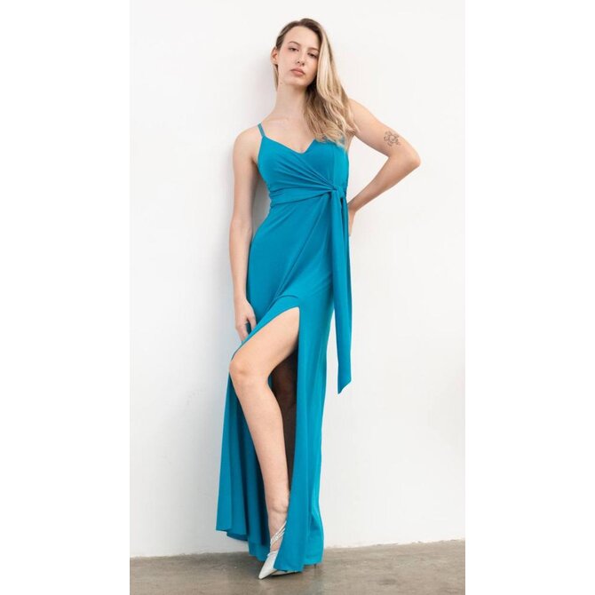 Dlouhé šaty na tenká nastavitelná ramínka, s rozparkem.