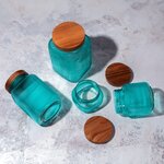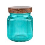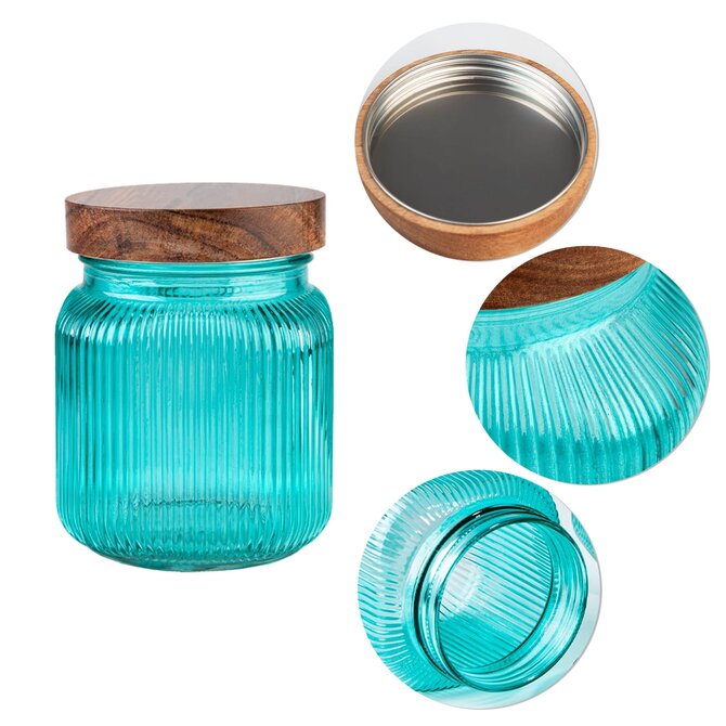 DuraHome Dóza s dřevěným šroubovacím uzávěrem, 1l, tyrkys