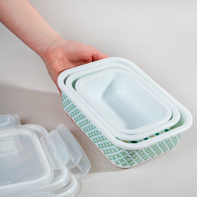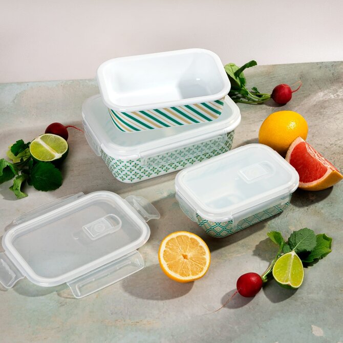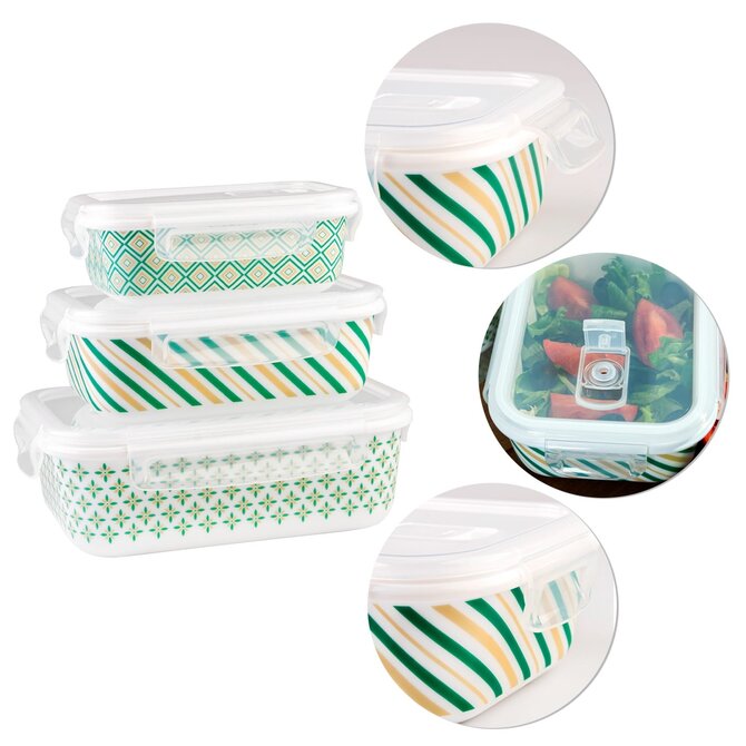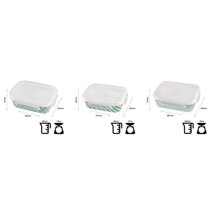 DuraHome Dóza skleněná hermetická, hranatá, zelená, sada 3 ks