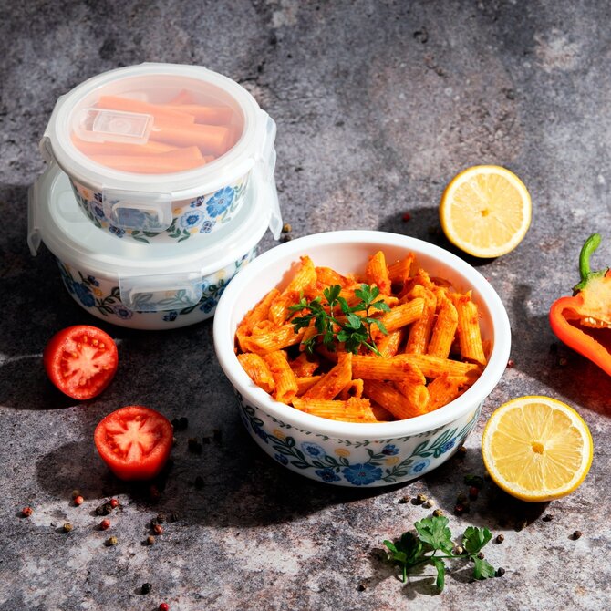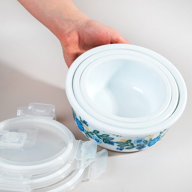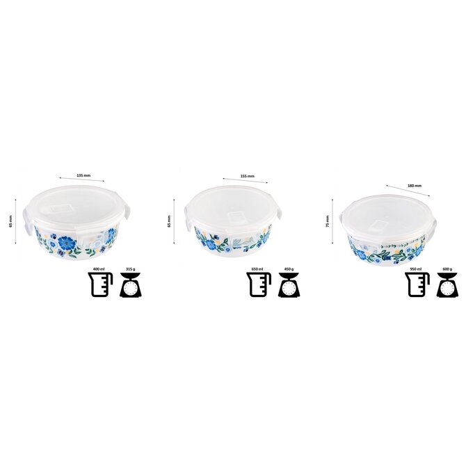 DuraHome Dóza skleněná hermetická, kulatá, malovaná sada 3ks