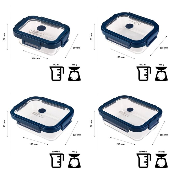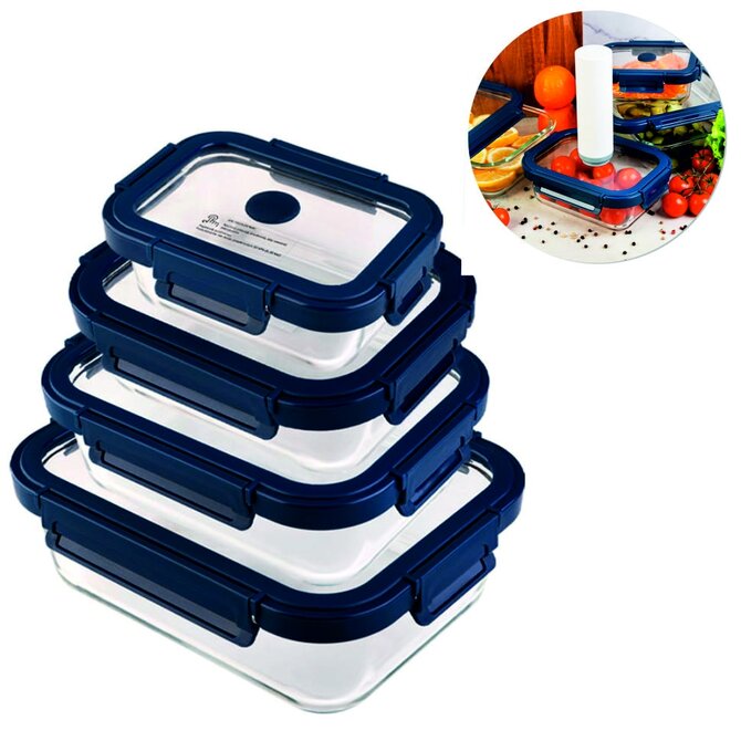 DuraHome Dóza skleněná, vakuovací, sada 4 ks, 370 - 1500 ml, s el. pumpičkou