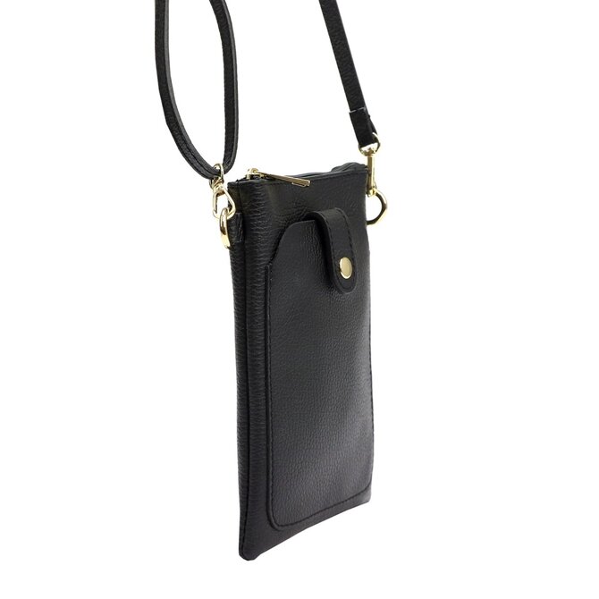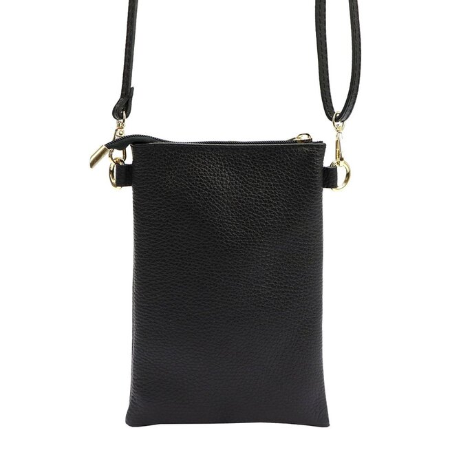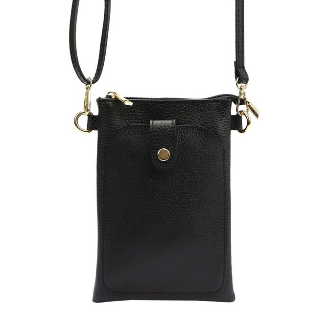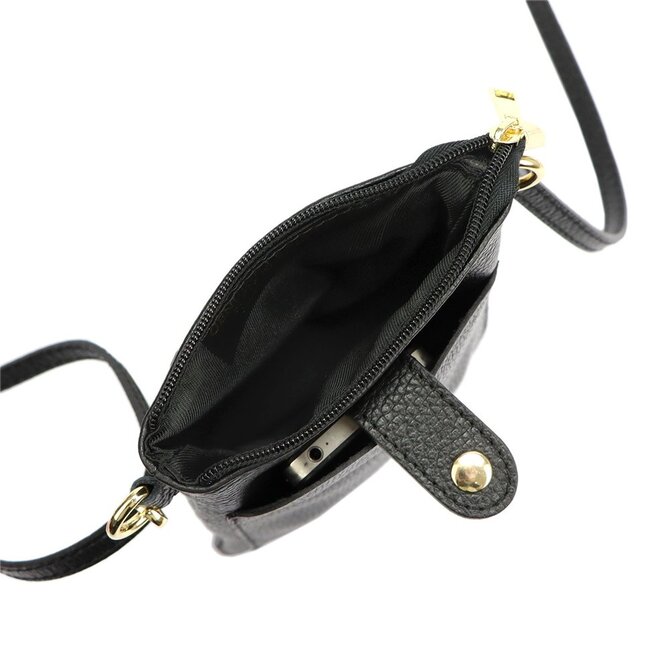 Dvouoddílová malá černá kožená crossbody kabelka (pouzdro na mobil) Luka no. 070 černá, kůže