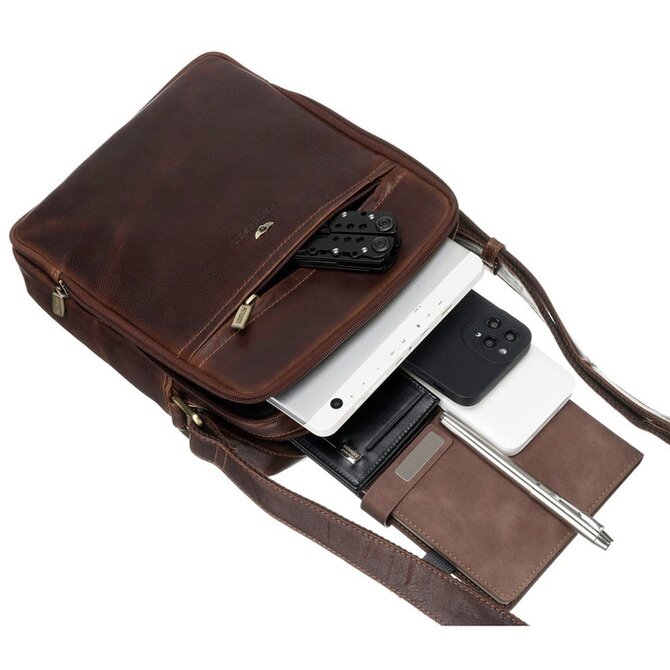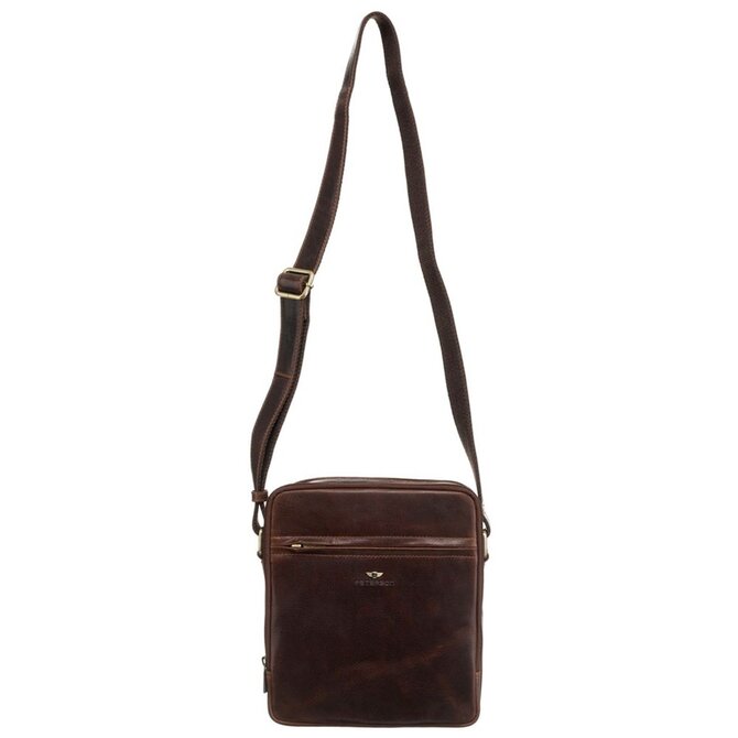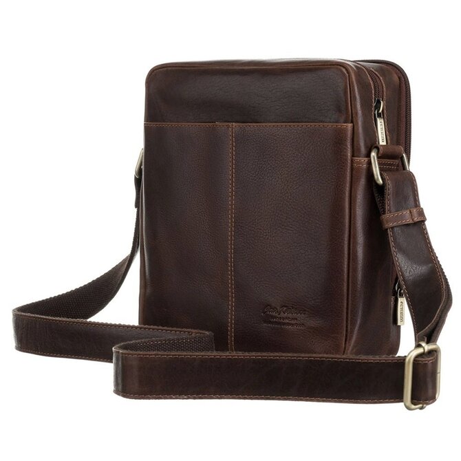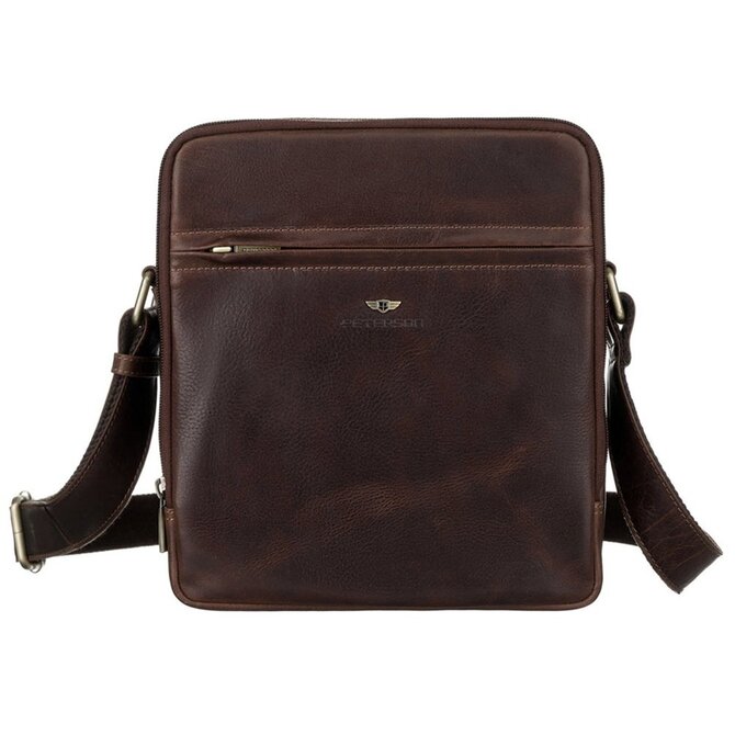 Dvouoddílová středně velká pánská kožená hnědá crossbody taška Peterson 8021-W hnědá, kůže