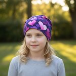 Ebbie Bavlněná čepice Beanie - FIALOVÁ SRDÍČKA Velikost: 54