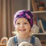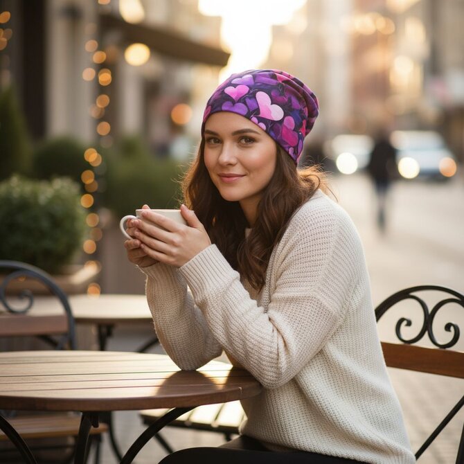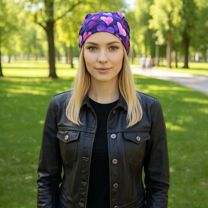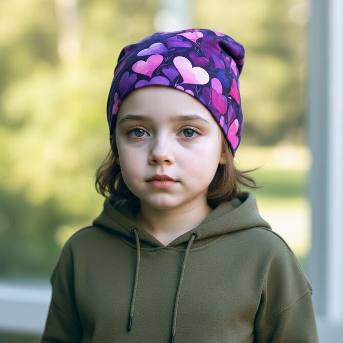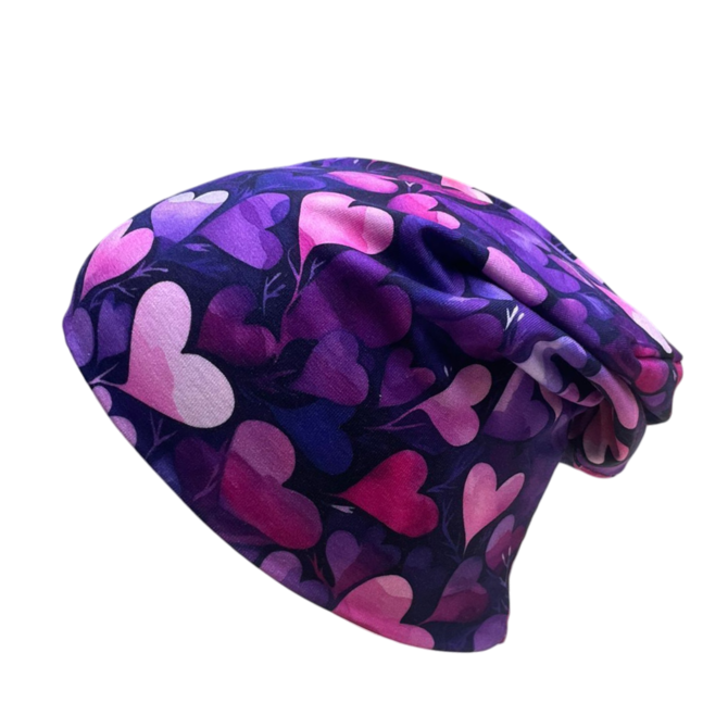 Ebbie Bavlněná čepice Beanie -  FIALOVÁ SRDÍČKA Velikost: 54