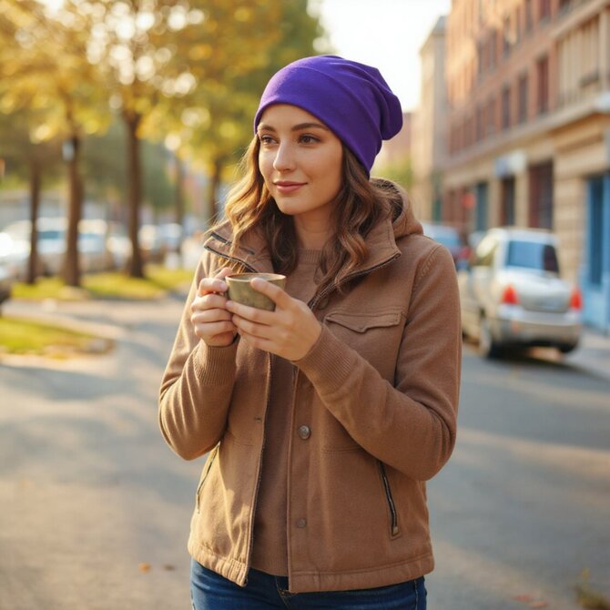 Ebbie Bavlněná čepice Beanie - FIALOVÁ Velikost: 54