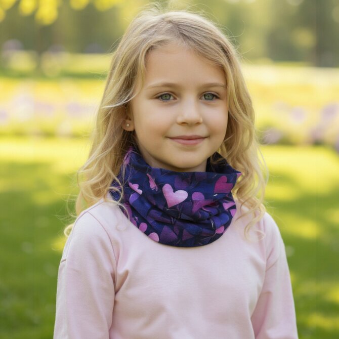Ebbie Bavlněný nákrčník - FIALOVÁ SRDÍČKA Velikost: dětský