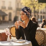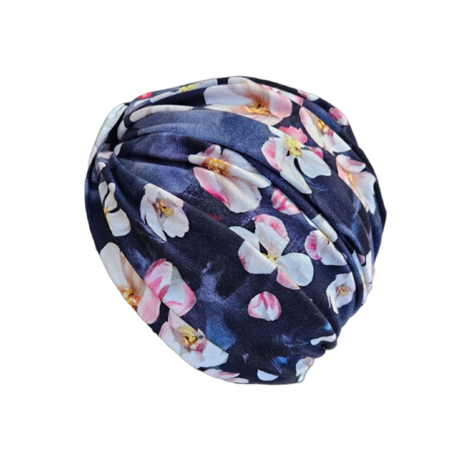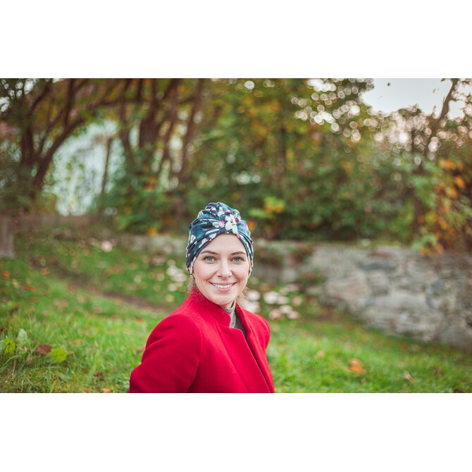Ebbie Bavlněný turban - KYTKY NA MODRÉ Velikost: 54