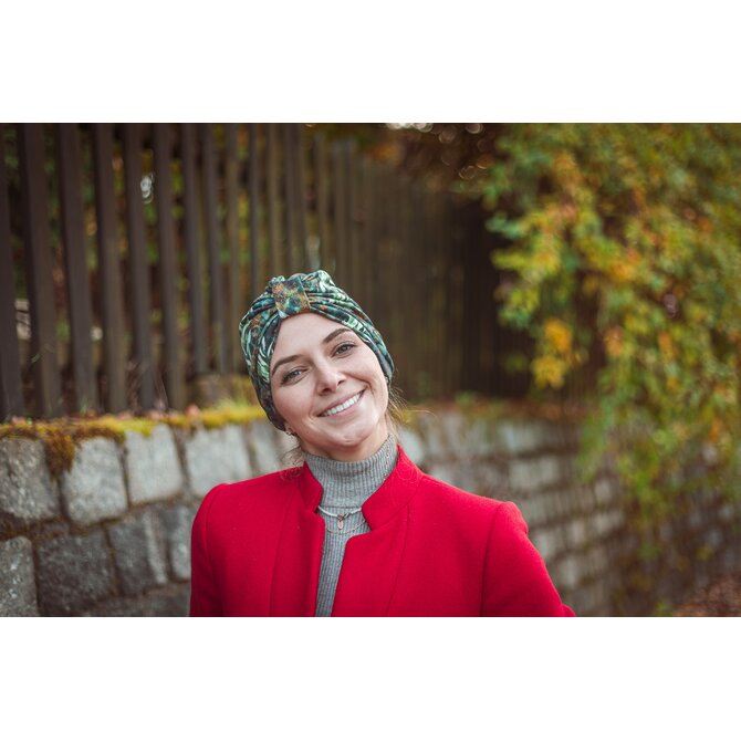 Ebbie Bavlněný turban  - SMARAGDOVÉ LISTY Velikost: 54