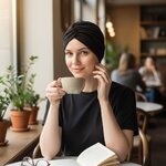 Ebbie Bavlněný turban-style - ČERNÝ Velikost: 54
