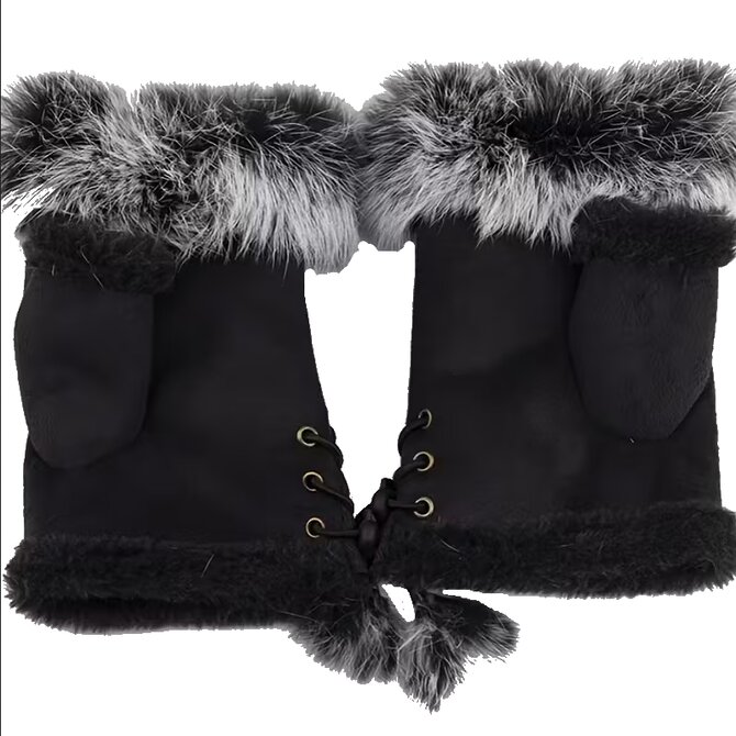 Elegantní dámské bezprsté zimní rukavice lemované kožíškem - černé - vel. UNI Černá, UNI