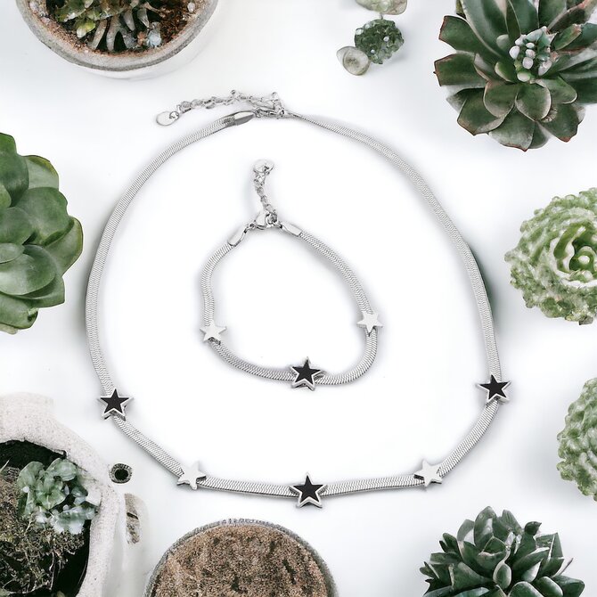 Ewena Dámský náhrdelník s náramkem z chirurgické oceli KM6428