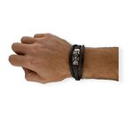 Ewena Náramek maltézský kříž černý z kůže a stříbrné oceli