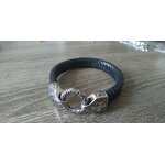 Ewena Náramek maltézský kříž pletený černý z kůže a stříbrné oceli