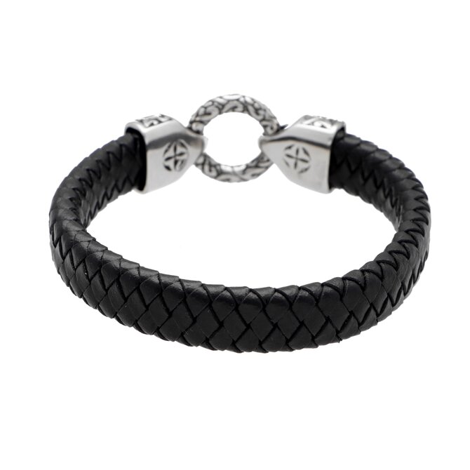 Ewena Náramek maltézský kříž pletený černý z kůže a stříbrné oceli