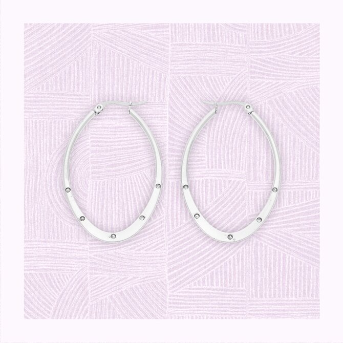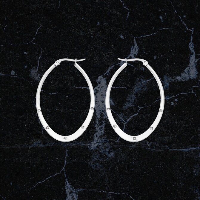 Ewena Náušnice oválné kruhy stříbrné z oceli 3,3 cm
