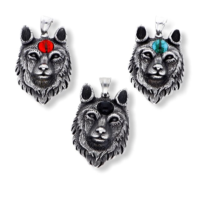 Ewena Ocelový přívěsek vlčí hlava s řetízkem KHB317