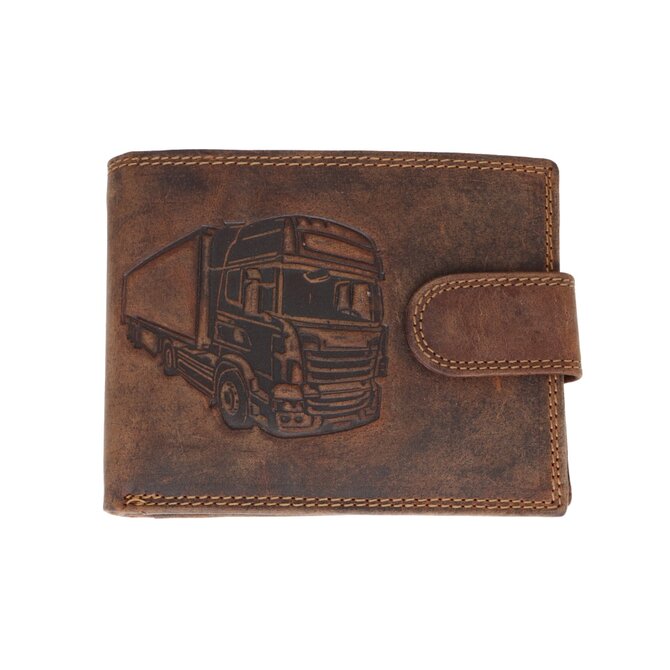 Ewena Pánská kožená peněženka hnědá s motivem Kamión