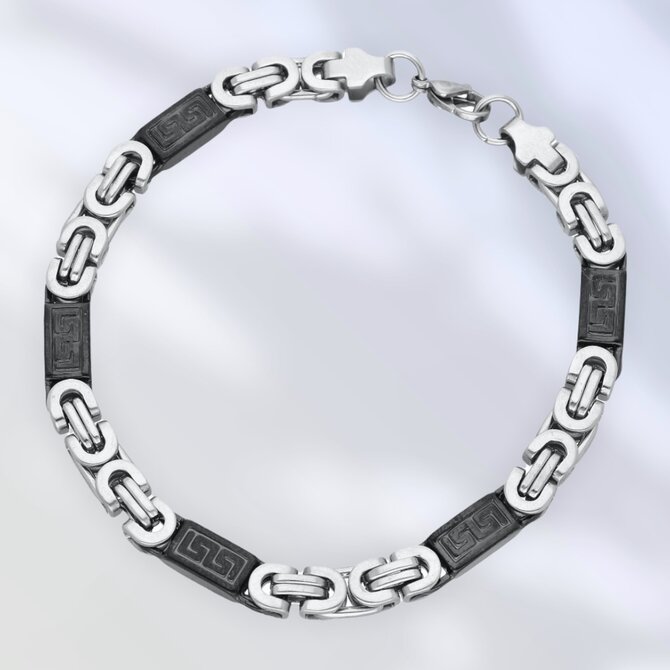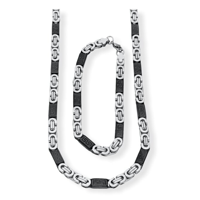 Ewena Pánský náhrdelník s náramkem z chirurgické oceli / řecký klíč KA920