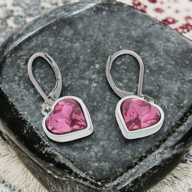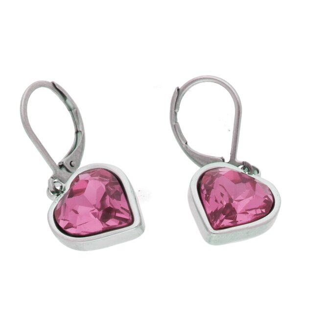 Ewena Růžové náušnice srdíčko z chirurgické oceli SD752
